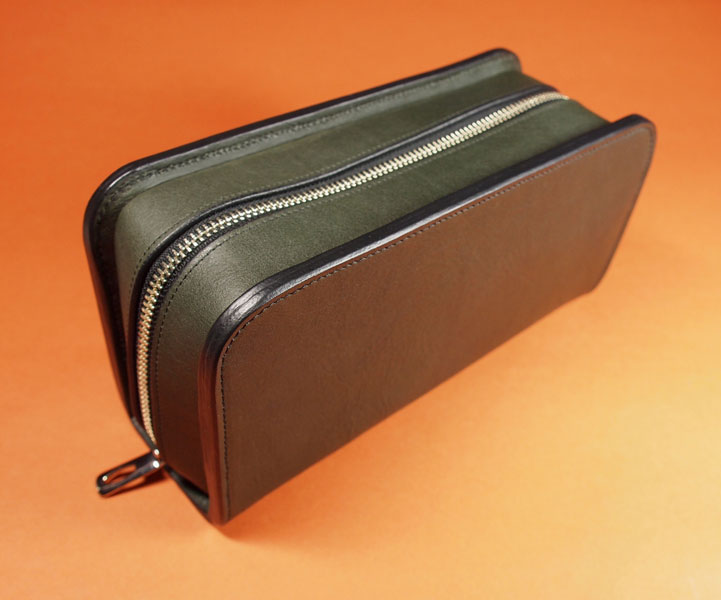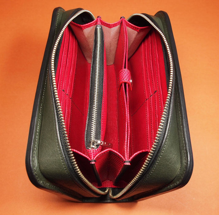 グリーンを使って製作した浅型のラウンドファスナー長財布