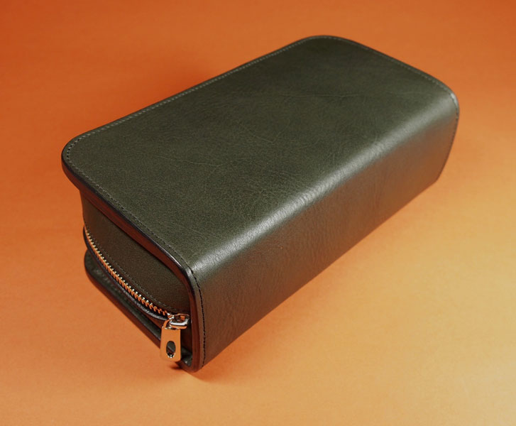 ダークグリーンのクロムレザーを使って製作した長財布と