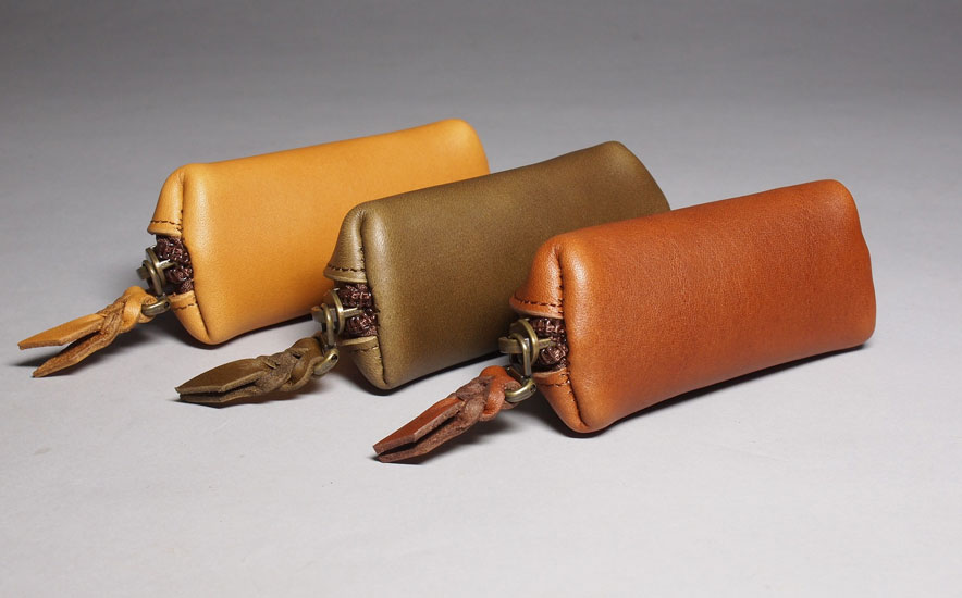 厚み2mm強の一枚革で製作したコインケースです。