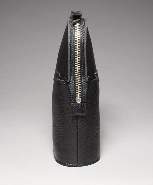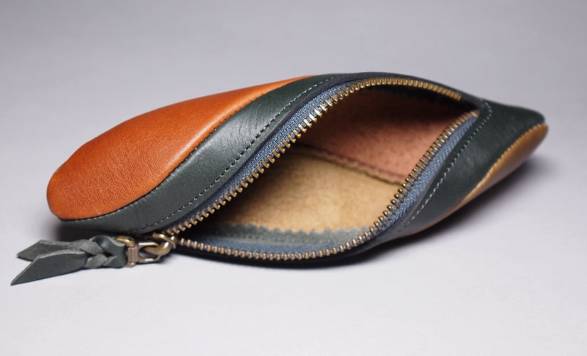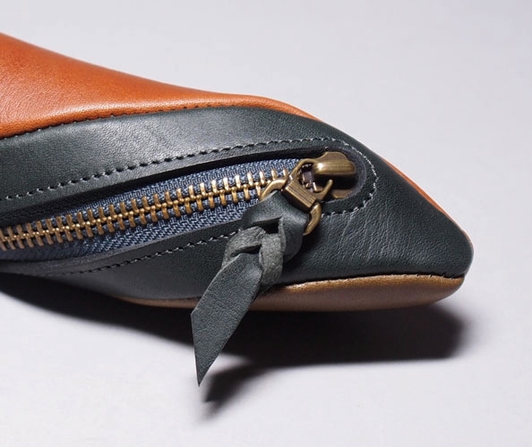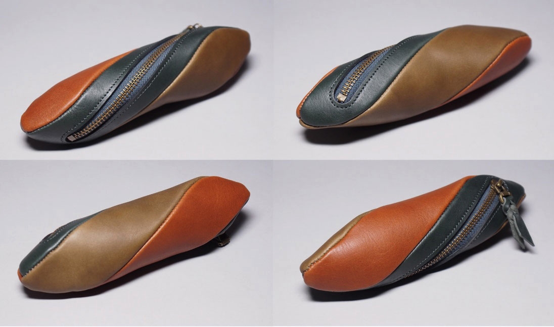 厚めのオイルレザーを3色使用して独特のフォルムに