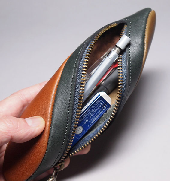 シュリンクレザーを使ったペンケースです。