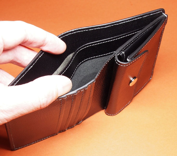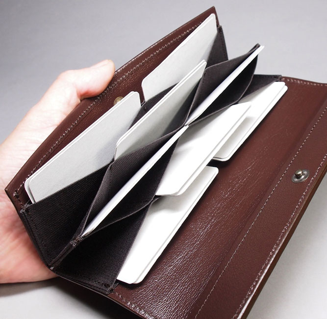 札入れは2段、カード類も8ヶ所に入るように