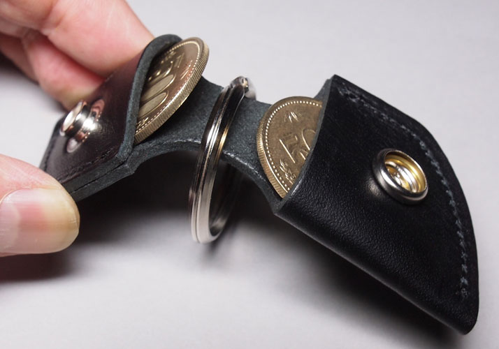500円玉を2枚ストックしておけるキーホルダー