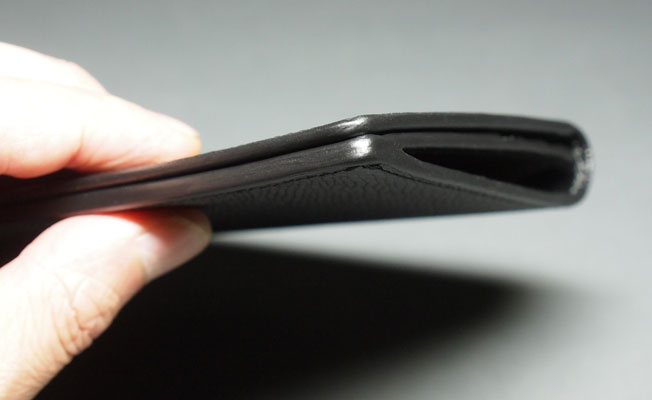 名刺が取り出しやすいように背面が後ろに曲がる