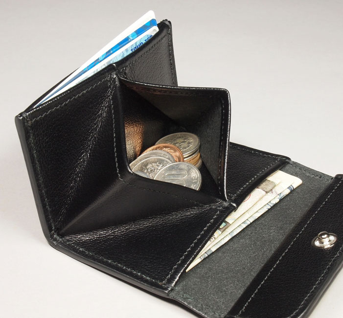 中央に小銭入れ、両サイドのポケットにはカードや紙幣が