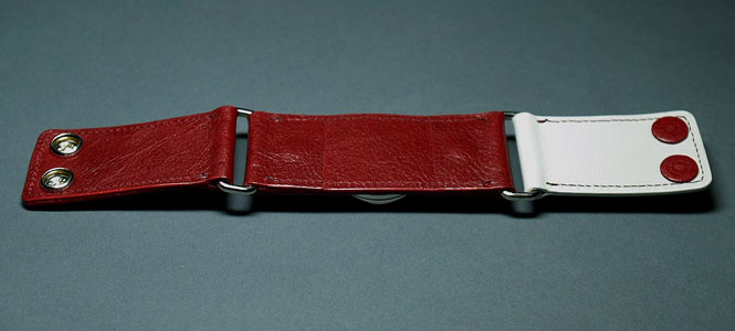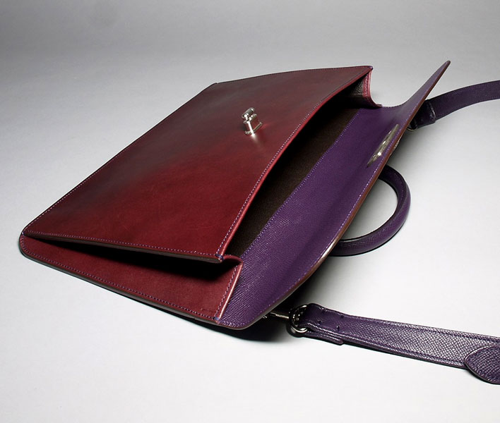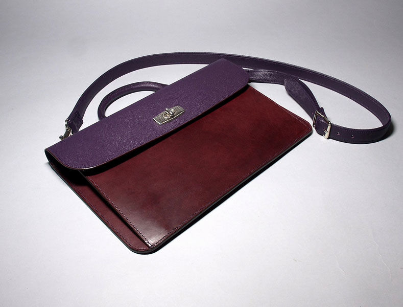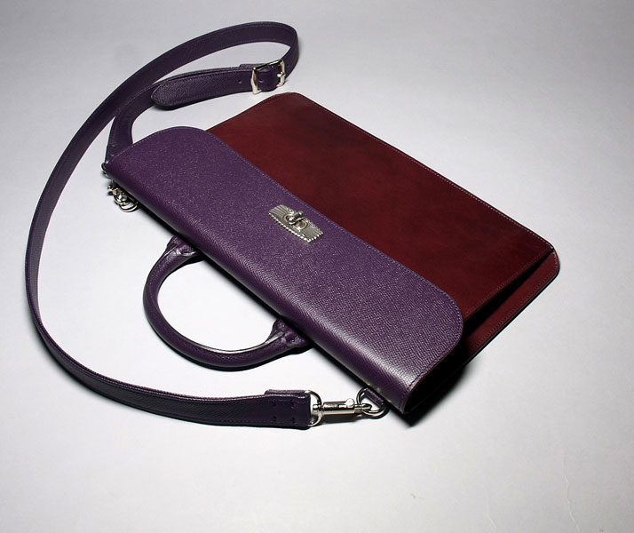 形は横長で、柔らかめの黒い革を主体に、ビビッドな
