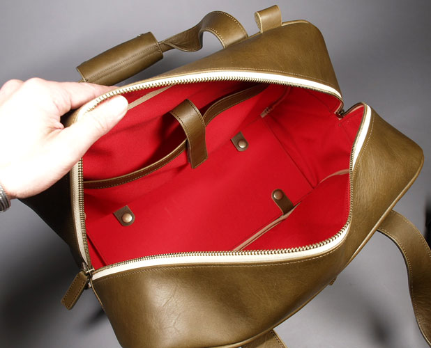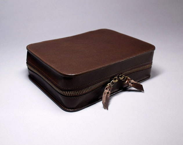 依頼者からの要望で、革は赤茶色、ファスナーや