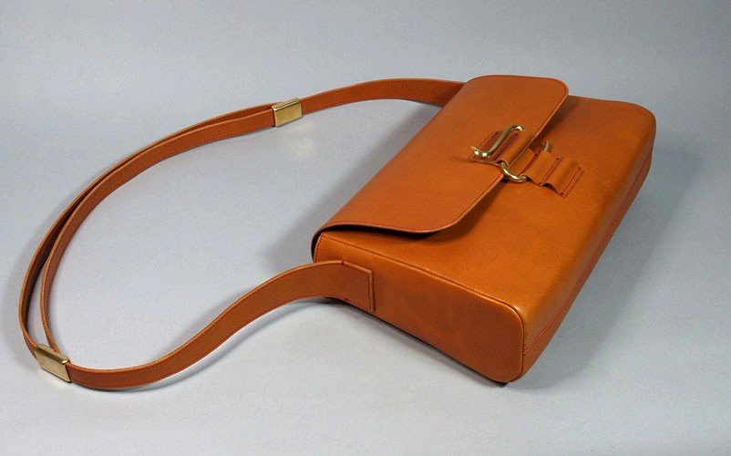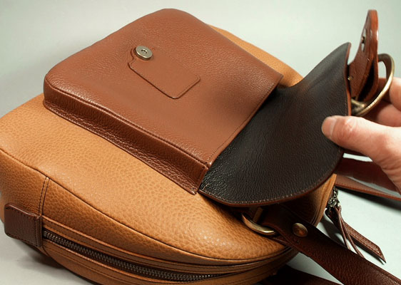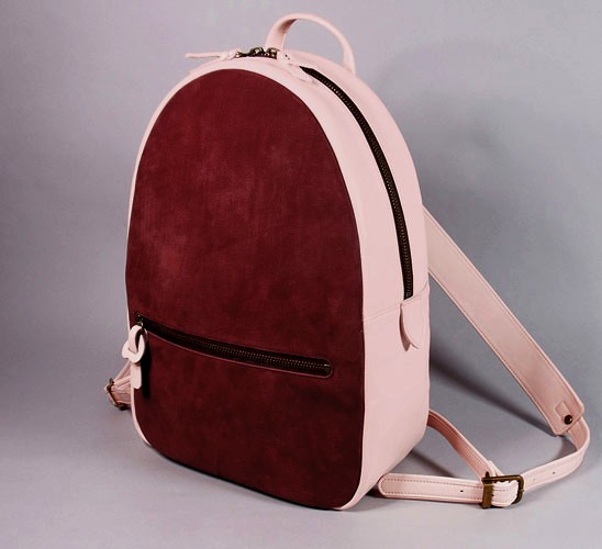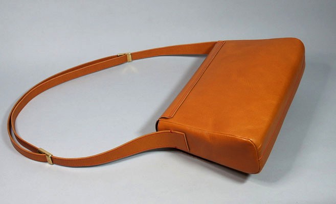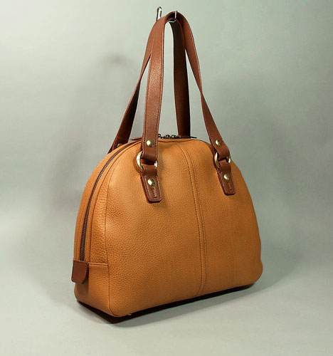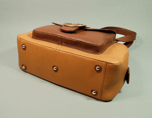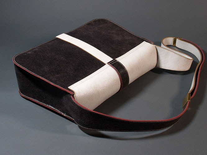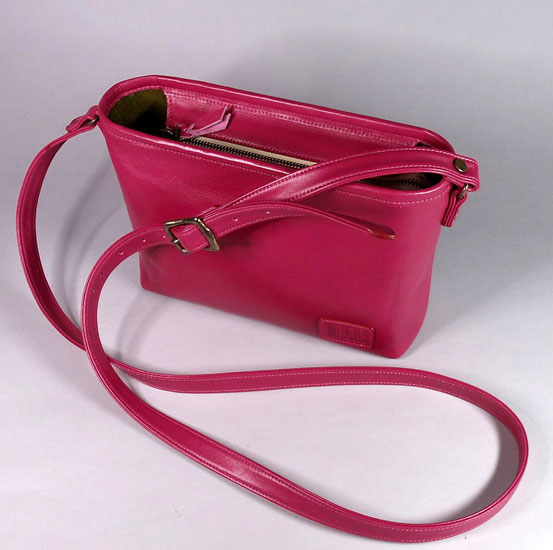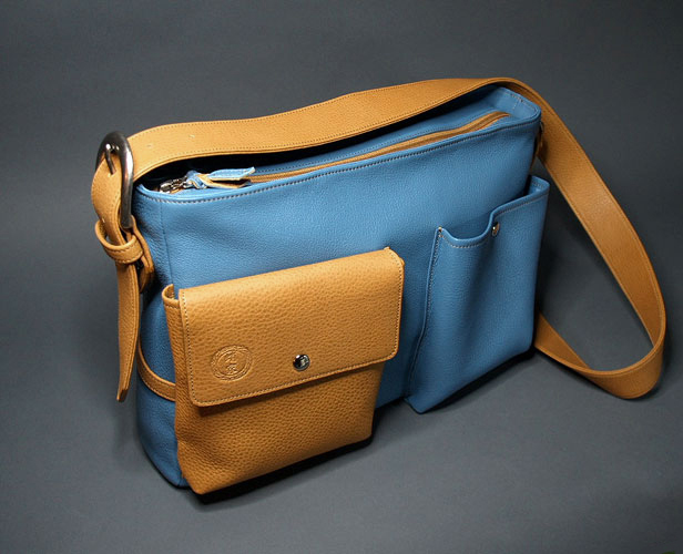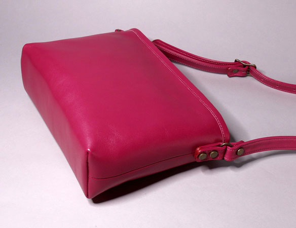 明るめのキャメルを基調に、ピンクと紫の革をアクセントに