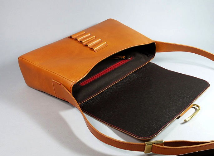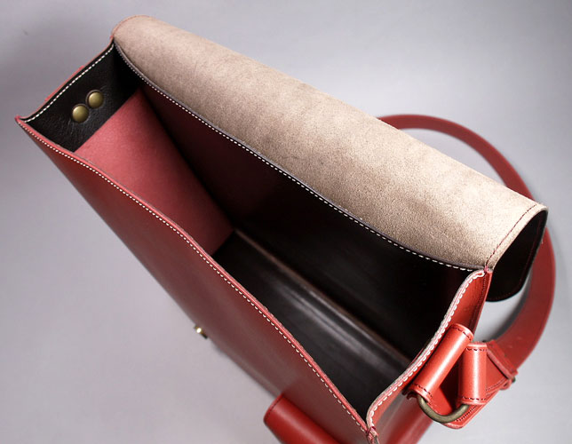 裏地にも茶色のディアスキン(鹿革)を贅沢に