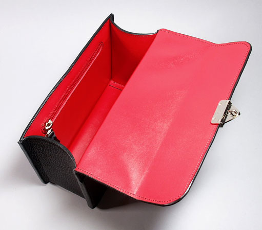 がま口式の小銭入れは仕切り付きで大きく開き、