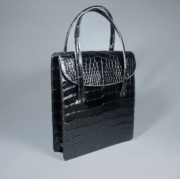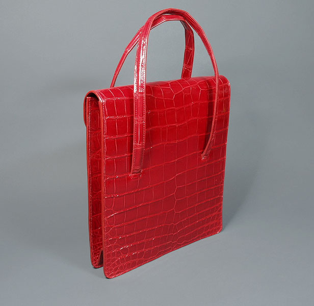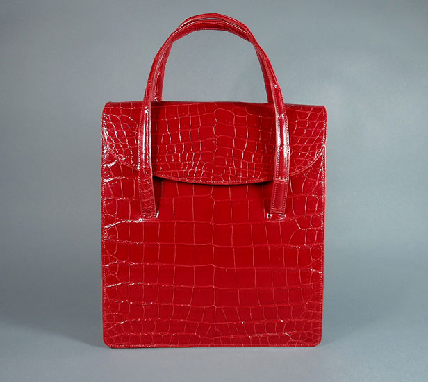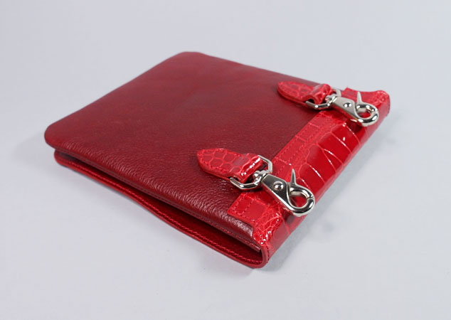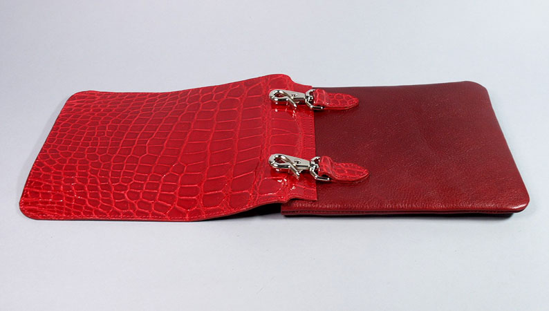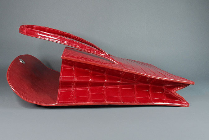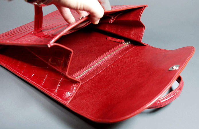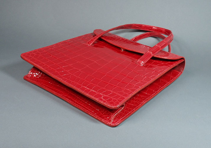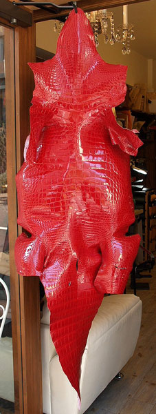 丁寧に艶出し加工が施された深紅の本クロコダイル革