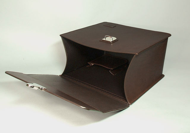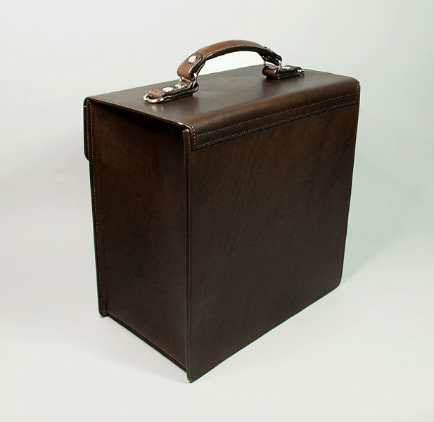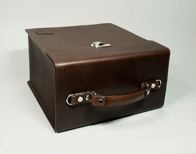 小型アンプ、付属ケーブル等を収納する革ケースが